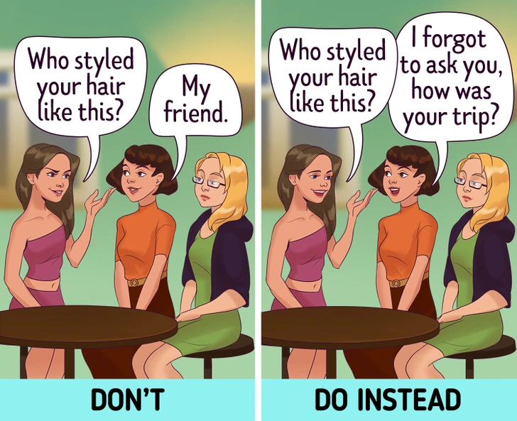 Start the conversation with your partner, colleague, or friend, with a positive comment. Make sure the person understands that you value their effort and afterward proceed with the crucial part of the conversation. End the conversation with words of gratitude, thanking them for taking the time to listen to you.